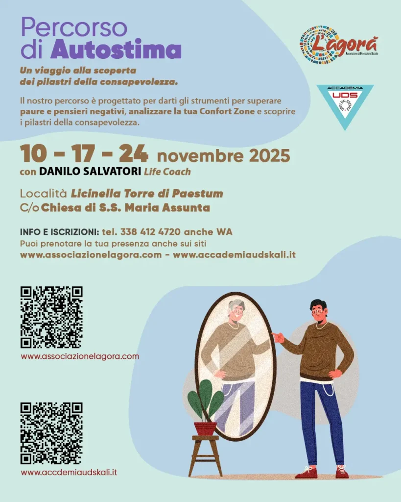 Questo incontro unico è stato progettato per fornirti strumenti pratici e concrete strategie per riscoprire il tuo valore, potenziare la tua autostima e affrontare la vita con una nuova prospettiva. Il life coach Danilo Salvatori ti guiderà in un pomeriggio di riflessione e crescita.
